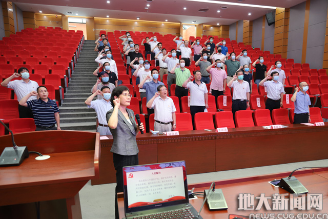 黄晓玫充分肯定了学校疫情防控突击队员和志愿者们为学校抗疫工作做出的贡献。她指出,在新冠肺炎疫情大考中,全体突击队员和志愿者们在学校党委领导下,坚持科学防控、精准施策、全心服务,得到了广大师生和居民的赞许。她动员全体教职员工积极奋发作为,共克时艰,化危为机,担负起责任和使命,积极投身学校改革发展,为建设地球科学领域世界一流大学贡献力量,为实现“美丽中国、宜居地球”美好愿景不懈奋斗。随后,她带领大家重温入党誓词。