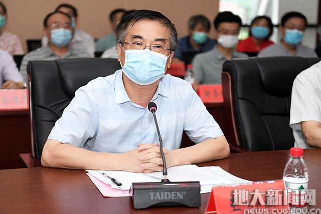 校长王焰新致辞。他指出,中国地质大学要扎根中国大地办学,就是要始终坚持服务自然资源事业尤其是国家地质事业的发展,始终成为行业改革发展历史进程的实践者、支持者、推动者和见证者。学校建校以来,校园面貌、办学规模、学科结构、隶属关系等发生了诸多变化,但是服务行业发展的坚守始终没有变,坚持为地质事业提供人才支持、科技支撑的追求始终没有变,与行业不可割舍的血脉联系也永远不会变。他表示,我校将围绕双方战略合作协议明确的具体任务,争取年年都有时间表,月月都有任务单,一件事接着一件事办,用实际行动为双方深度合作和长远发展打下牢固基础,用丰硕的合作成果证明携手创一流是正确的选择。他强调,联合研究生院要进一步提高政治站位,从保障国家能源资源安全、服务教育强国和地质强国建设的角度,深刻认识联合培养高层次人才的重大意义。解放思想,大胆创新符合新时代地质事业发展的新型人才培养机制,培养一批理论功底深、实践和创新能力强、工作作风优的高素质地质调查接续人才,在新时期为服务行业发展作出更大贡献。