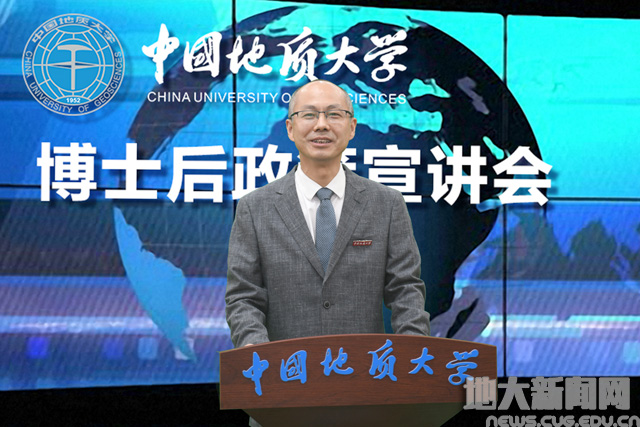 党委人才工作办公室主任周刚以《地大是有底蕴、有高度、有梦想、有温度的大学》为题,解读了国家、地方及我校博士后相关政策。