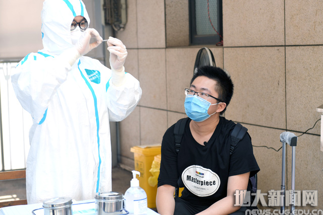 到达宿舍后,学生将在宿舍门口进行第二次测温、扫码和行李消杀。
