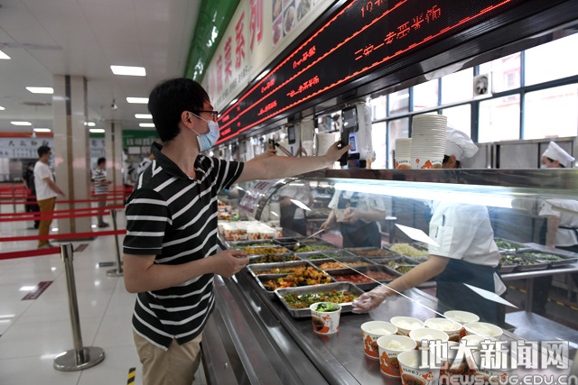 进入食堂大厅后,需在洗手池处进行手部消毒,然后排队有序购餐。食堂不提供堂食。