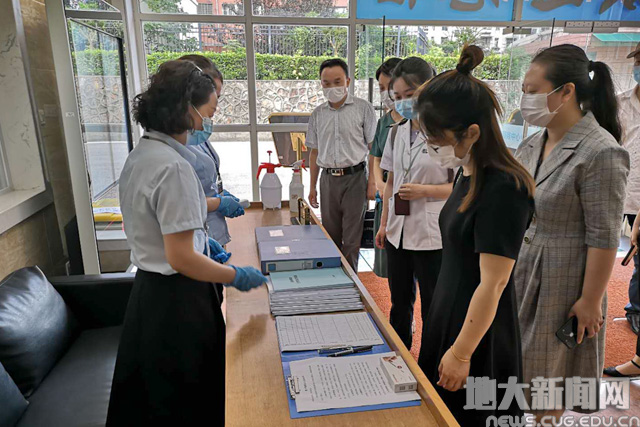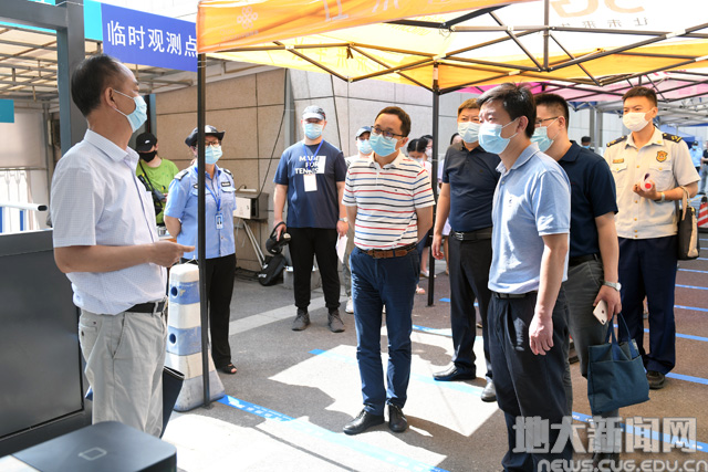 地大新闻网讯(记者徐燕 摄影张玉贤 王紫璇)6月4日,洪山区新冠肺炎疫情防控指挥部辖区高校春季学期开学工作组评估验收组来校,检查指导开学准备工作。验收组由洪山区政府办副主任余冰带队,校党委书记黄晓玫,党委副书记王林清,副校长刘杰,校长助理周爱国,学校疫情防控领导小组办公室、相关单位负责人参加检查工作。