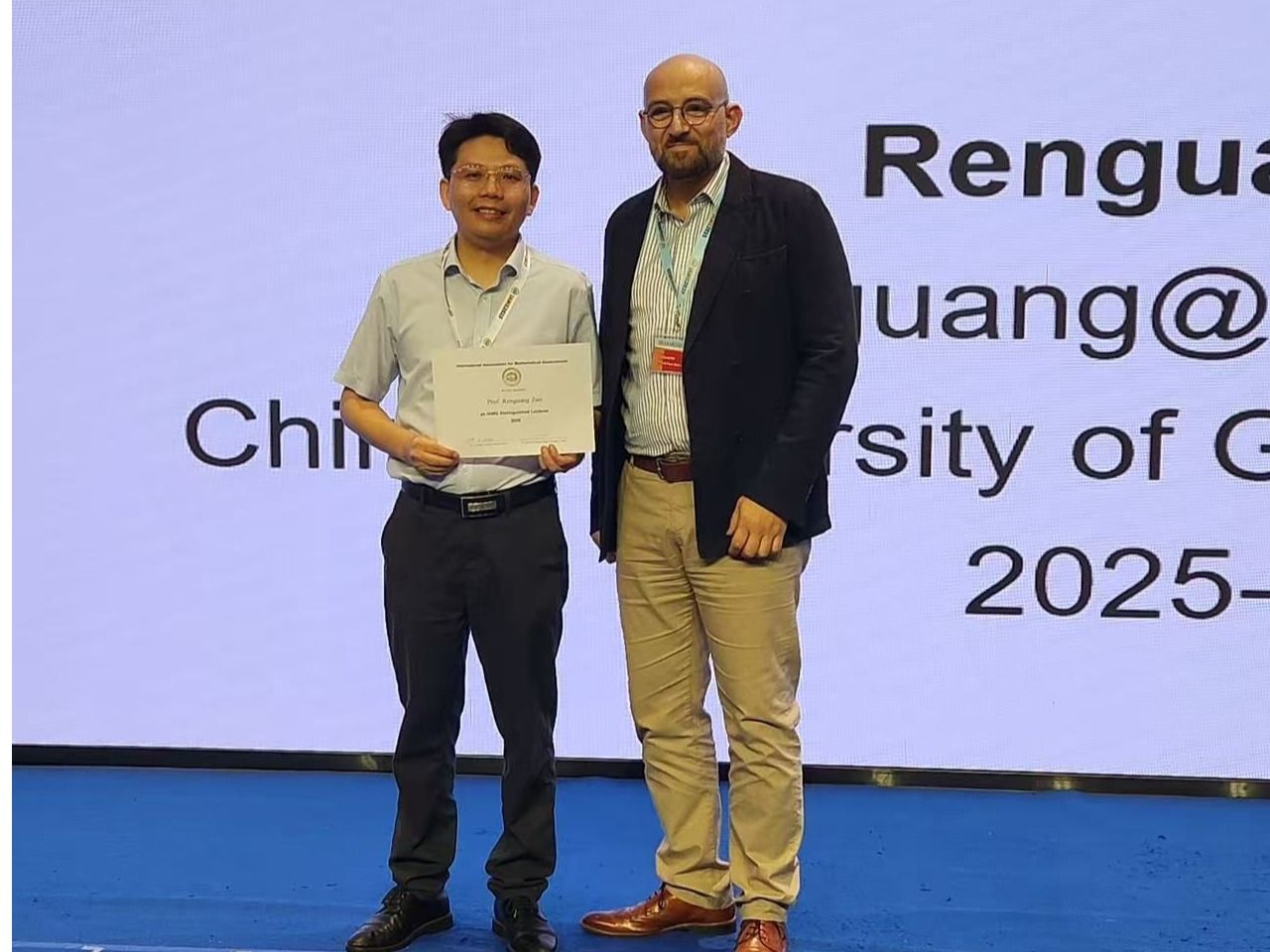 地大新闻网讯 (通讯员 殷茵)近日,在广东省珠海市召开的第23届国际数学地球科学大会上,我校地质过程与成矿预测全国重点实验室左仁广教授荣获国际数学地球科学协会杰出讲席奖,并在大会上作题为《数据和知识双驱动的智能矿产预测》的主旨报告。