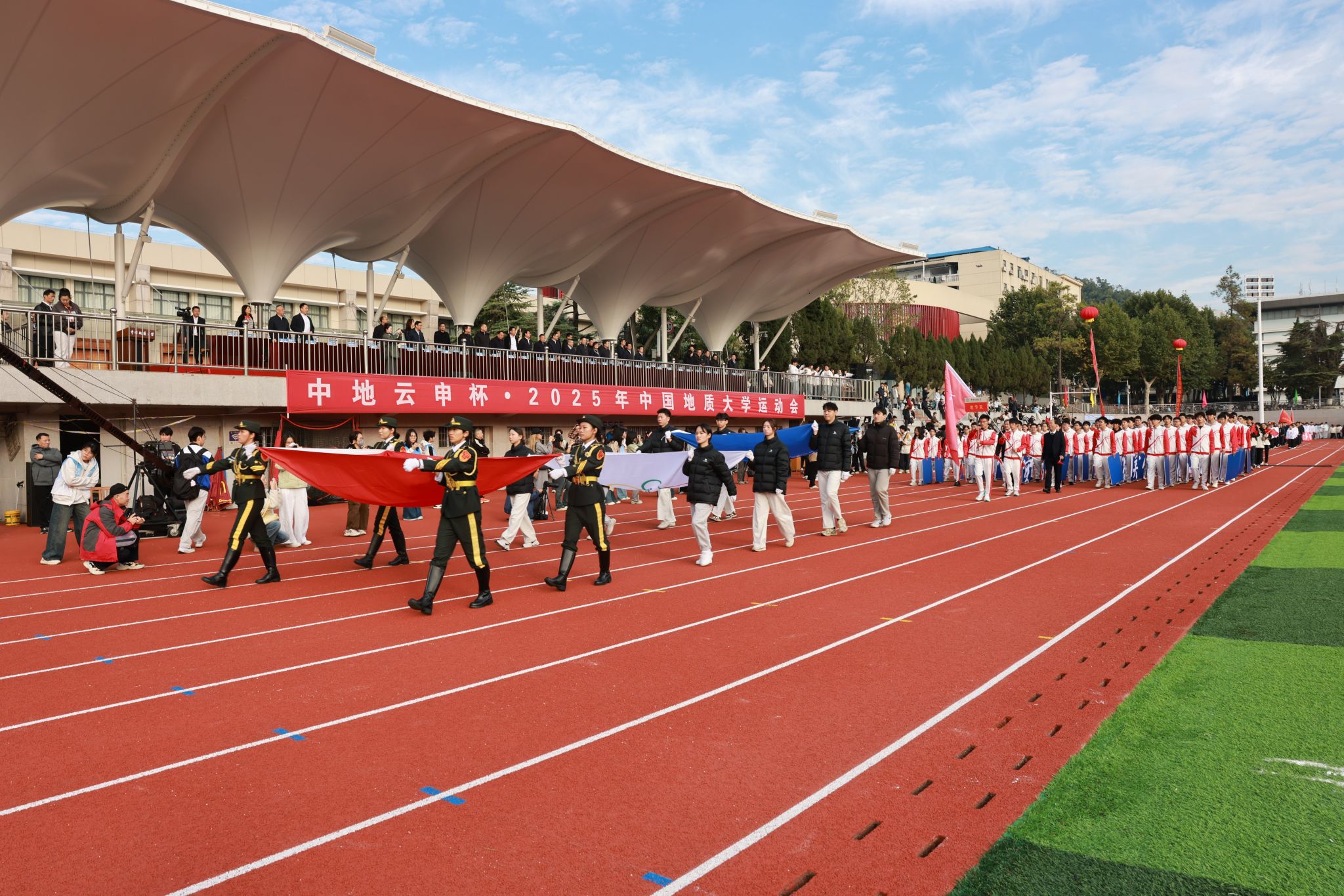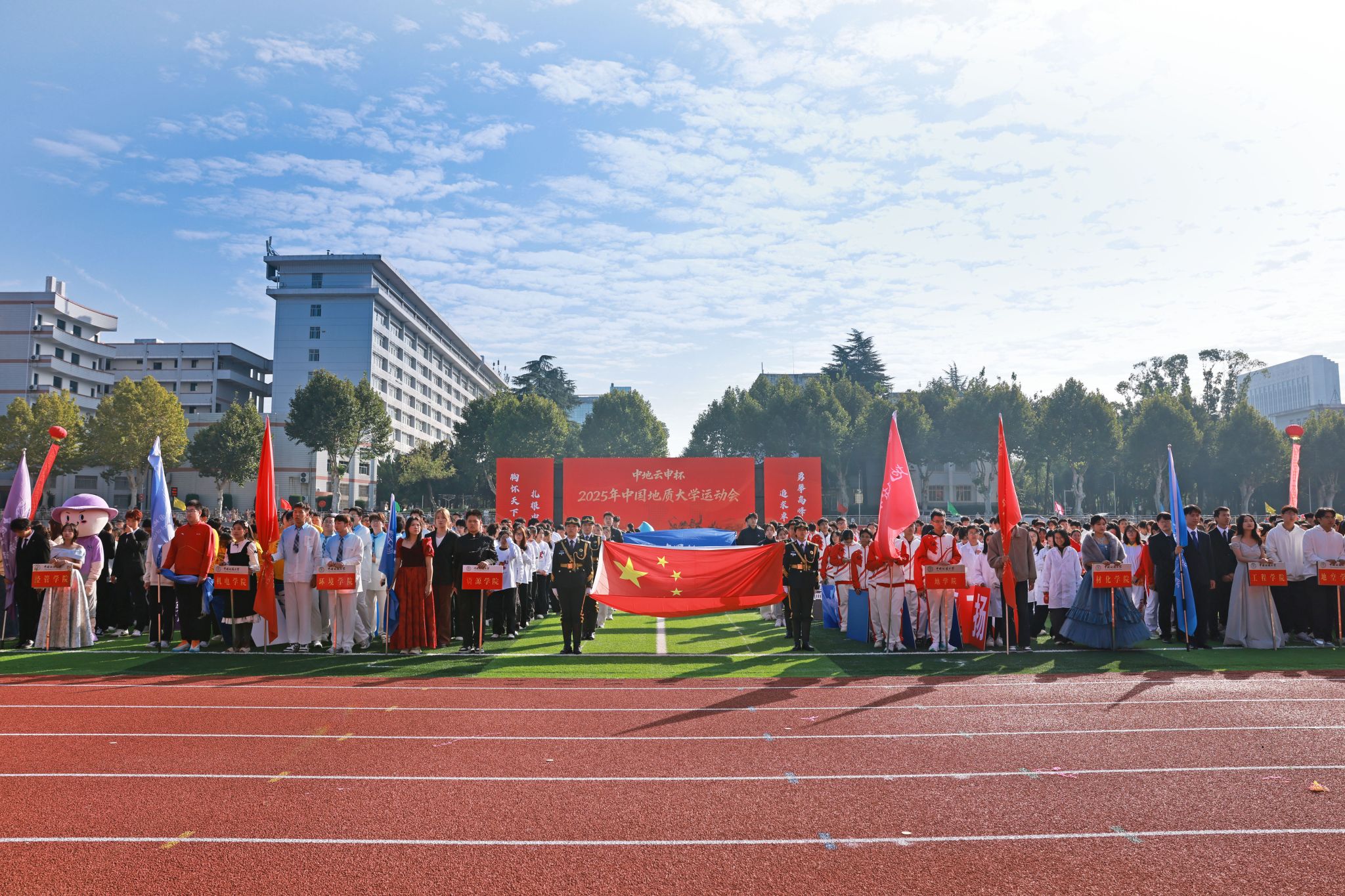地大新闻网讯 青春飞扬,激情绽放,运动赛场斗志昂!10月24日,“中地云申杯”2025年中国地质大学运动会在南望山校区西区田径场举行。校领导刘杰、李建威、王林清、唐忠阳、胡守庚、王文起,党委常委、组织部部长陈文武,学校各二级单位负责人及各分工会、各学院代表队及赞助单位武汉中地云申科技有限公司代表参加开幕式。