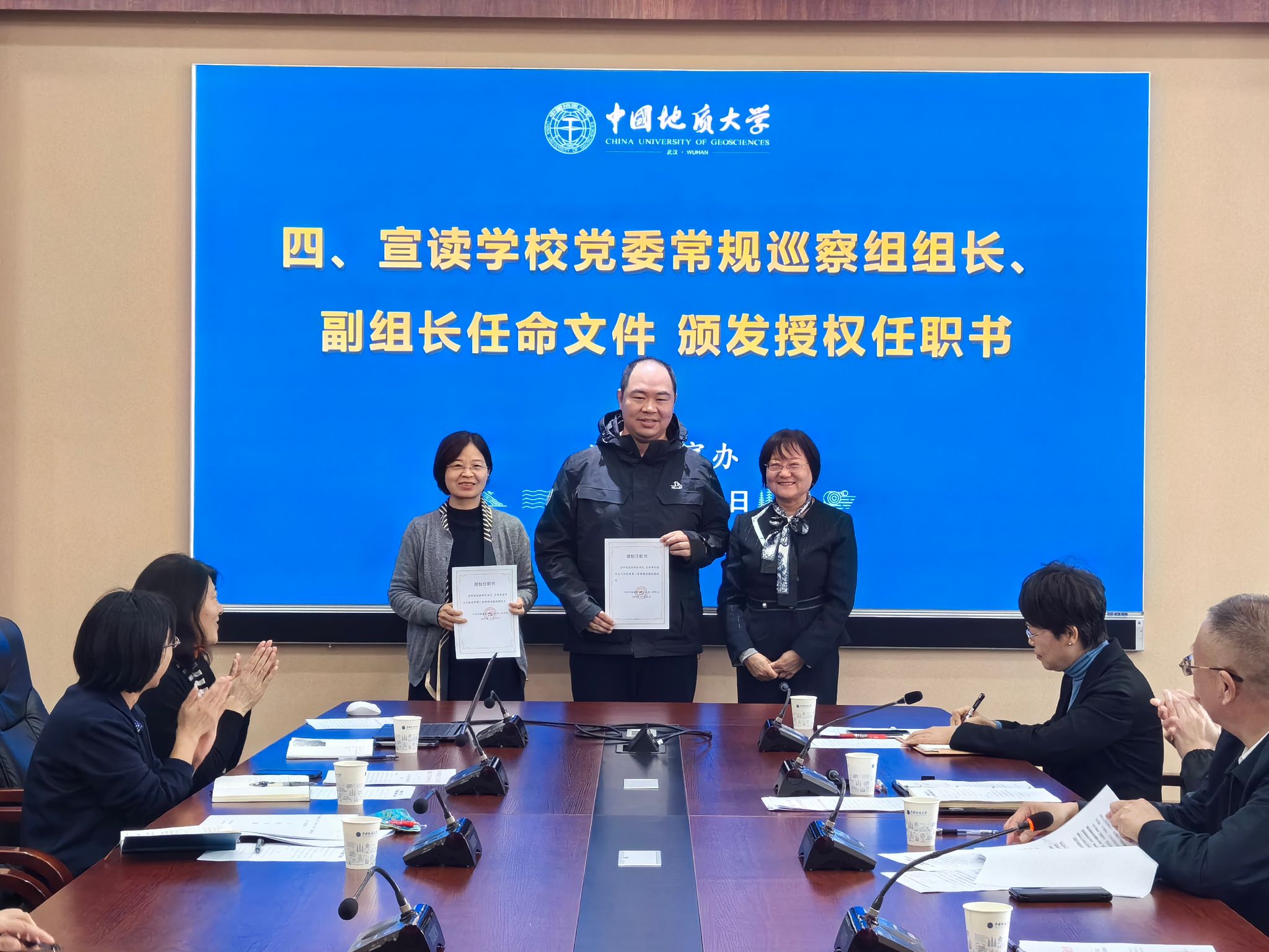 陈文武宣读学校第十三届党委第三轮巡察组组长、副组长任命文件与巡察工作分工,并颁发授权任职书。