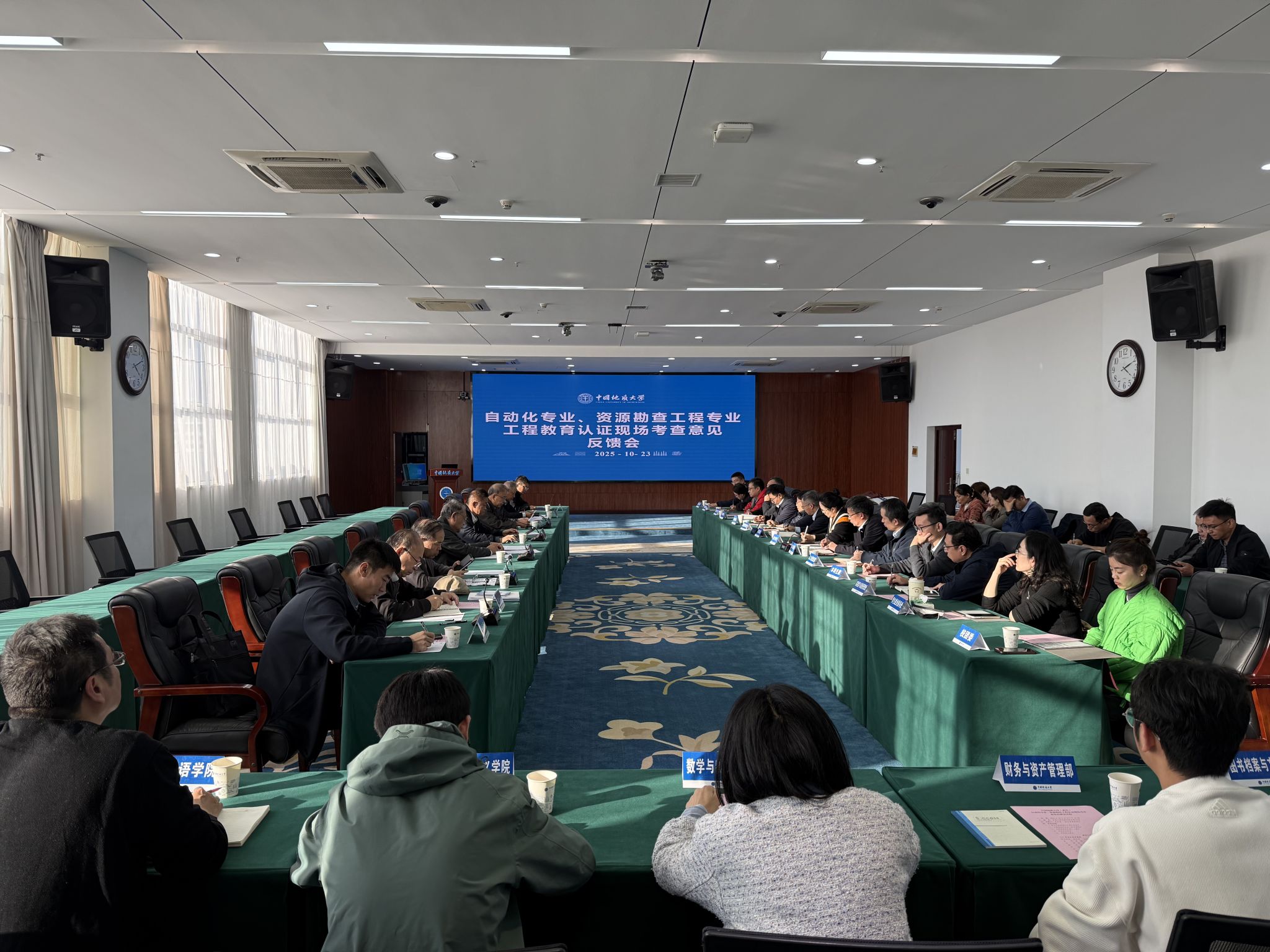 在意见反馈会上,金志浩代表专家组向学校反馈此次入校考查情况。他肯定了学校在自动化专业、资源勘查工程专业的人才培养目标、课程体系设置、师资队伍建设等方面所做的工作,并提出了后续专业建设和教学质量管理等方面建议。