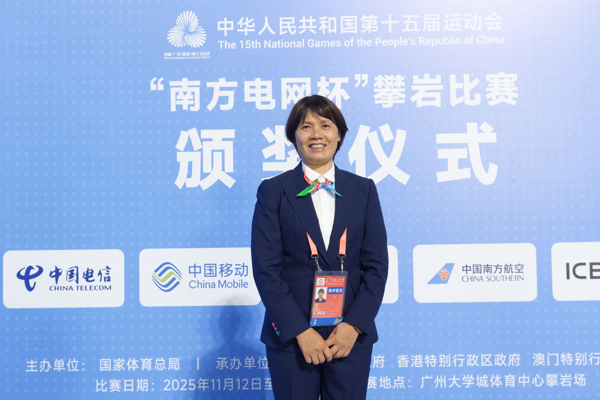 黄静,攀岩国家级裁判,作为我国攀岩领域的资深裁判,长期致力于该项目的竞赛与裁委会工作。她是中国攀岩项目裁判委员会委员,拥有丰富的国际级赛事执裁经验,曾深度参与杭州亚运会、攀岩世界杯等多项国内外顶级赛事的裁判工作。此次全运会中,黄静肩负仲裁核心职责,聚焦赛事纠纷协调关键环节,以专业视角化解争议、规范流程,展现了地大教师在体育专业领域的实践实力与责任担当,为青年学子树立了“知行合一、深耕专业”的榜样。