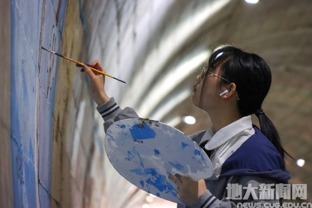 地大新闻网讯(学生记者李江沐 摄影张言榛)调颜料、画线稿、涂颜色……近日,地大隧道里同学们忙碌的身影引起来往路人的注意。美丽的地球、巍峨的雪山、夺目的珠宝、俏皮的动漫人物……一幅幅惟妙惟肖的手绘壁画在同学们笔下诞生。