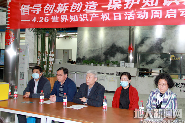 地大新闻网讯(通讯员柳杨 摄影张川)为迎接第21个世界知识产权日的到来,贯彻落实习近平总书记关于知识产权工作的重要论述,图书馆与知识产权信息服务中心联合开展以“倡导创新创造,保护知识产权”为主题的“世界知识产权日活动周”系列活动。4月26日下午,“世界知识产权日活动周”启动仪式在图书馆一楼大厅举行,副校长傅安洲、图书馆及相关单位负责人及部分老师、学生代表参加活动。