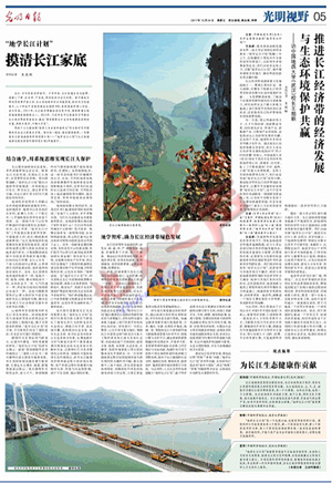 本次报道在《光明日报》第五版“光明视野”这一具有独特风格版面中整版报道“地学长江计划”,体现了媒体对我校牵头的“地学长江计划”的高度重视和关注。其版面头条,刊发记者王庆环采写的新闻通讯《“地学长江计划”:摸清长江家底》。文中以“结合地学,用系统思维实现长江大保护”“地学智库,助力长江经济带绿色发展”两个部分展开,对“地学长江计划”的背景、意义、实施路径等进行全方位报道。文中写道:修复长江生态环境,实现长江大保护,必须要用系统思维。面向国家战略,“地学长江计划”提出从地球科学视域进一步系统地认识长江、研究长江,通过多学科交融,对长江进行更大时空尺度的系统性研究。