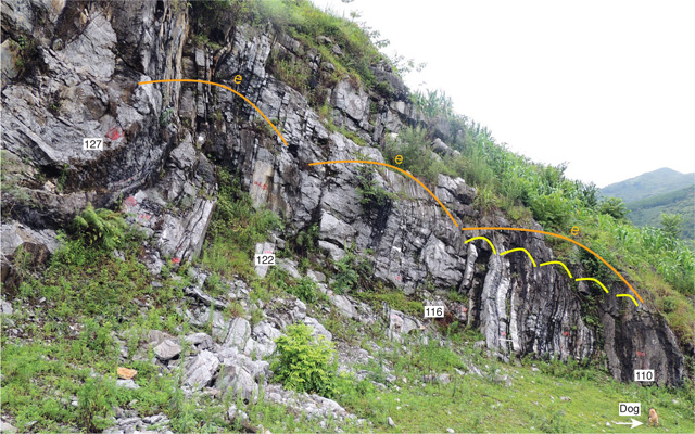 2014年,黄春菊团队在“大贵州滩”的遗址——一个小山村关刀村——开展了野外地质考察,采集了大量的古气候替代指标数据。结合前人发表的古生物化石和古地磁学资料,博士生李明松等人仔细研究了“大贵州滩”安尼期地层中记录的古气候信号。最终,他们成功地识别出了周期为40万年的古气候变化的“心跳”,这是学术界公认的地球演化历史中最为稳定的古气候“心跳”,天文学家认为它是地球公转轨道的长偏心率周期,来自于金星与木星的近日点对地球引力的长期相互作用。安尼期包含了大约13个这样的“心跳”,这些发现帮助他们建立了530万年的天文地质年代标尺。