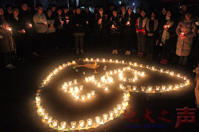 (地大之声学生记者郭慧 卢子蒙 摄影李孝忠)12月13日,正值南京大屠杀死难者公祭日,由我校信息工程学院组织的悼念活动,在西区体育馆门口举行。约两百人参加本次悼念活动。