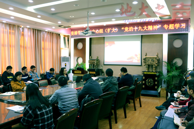 12月11日下午,资源学院党委组织开展党委中心组(扩大)“党的十九大精神”专题学习。学院党委中心组成员,学生党支部书记和青马工程提高班学员参加了学习。