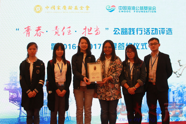 2016年10月15日,在宋庆龄基金会“青春•责任•担当”公益践行活动获奖