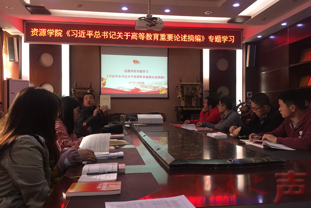 10月26日,资源学院各党支部按照学校统一安排,召开主题党日活动,专题学习十九大精神。师生党员纷纷分享了自己学习十九大精神后的体会。