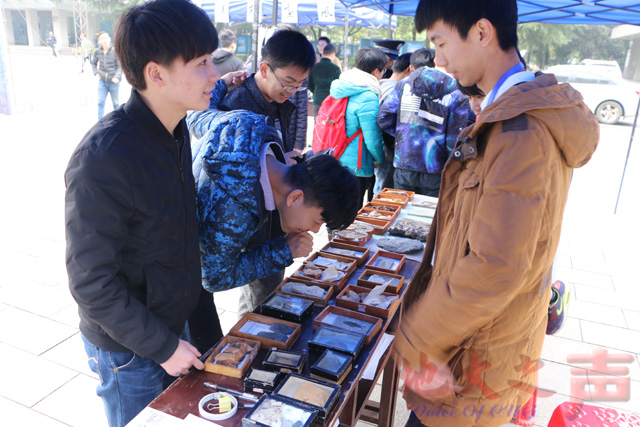 在随后的地学科技文化成果展演中,同学们热情高昂,积极参与。现场的方铅矿、黄铜矿、闪锌矿等标准矿物,三叶虫、植物化石、精美的珠宝吸引了大批同学。模拟国际学术会议展板竞赛优秀作品展、野外实习摄影征文优秀作品展、优秀团队展、优秀野簿展,美国石油地质学家协会、美国石油工程师协会、国际数学地质学协会、国际经济地质协会等国际学术协会地大分会的年度活动介绍和现场知识竞答活动,聚集了众多人气,吸引了广大师生驻足观看。