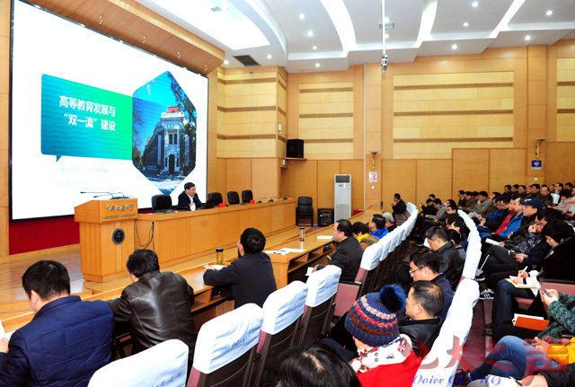 (地大之声记者徐燕 摄影张玉贤)12月4日,教育部科技发展中心李志民在迎宾楼报告厅作报告。校领导何光彩、王焰新、朱勤文、成金华、赖旭龙,全体处级干部,校学术委员会主任、副主任,学科建设委员会主任、副主任,机关科级干部,学科建设相关人员参加报告会。校党委书记何光彩主持报告会。