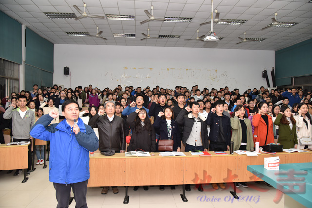 王焰新以“学习践行习近平新时代中国特色社会主义思想,做新时代优秀大学生”为题,向大家介绍了党的十九大概况和十九大报告内容。他从“三个意味着”、一个重大时代课题、十个基本问题等方面,详细解读了习近平新时代中国特色社会主义思想的“八个明确”和“十四个坚持”的重要内涵。