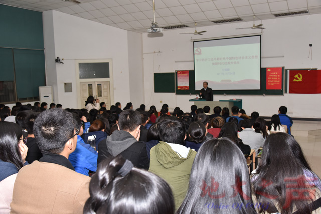 (地大之声通讯员张学海 孟国强)11月24日,校长王焰新为环境学院学子讲党课。环境学院党委书记李素矿,学工组全体老师,学院学生党员、入党积极分子、学生干部等参加了党课学习。