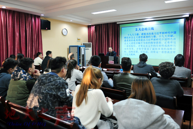 (地大之声通讯员李杰 摄影张玉贤)11月23日下午,校党委书记何光彩为数学与物理学院87名少数民族预科生作党的十九大精神宣讲报告。