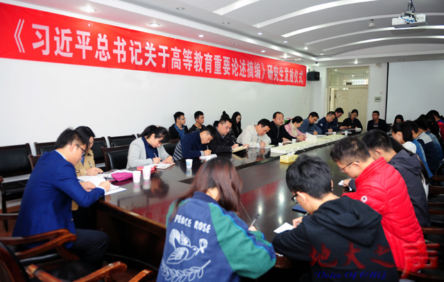 (地大之声通讯员徐伟 李焕杰 周南佳娃)10月30日,《习近平总书记关于高等教育重要论述摘编》首发仪式在研究生院106会议室举行。校党委书记何光彩,相关职能部门负责人、研究生辅导员代表、各培养单位研究生代表参加了首发仪式。