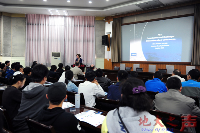 (地大之声通讯员殷茵 摄影张玉贤)10月20日,美国地球物理联合会(AGU)常务主任兼首席执行官Christine McEntee教授、副主席Brooks Hanson教授、AUG学术刊物主编Michael Liemohn教授和Minghua Zhang教授一行四人来校进行学术交流。会议由生物地质与环境地质国家重点实验室陈中强教授主持。