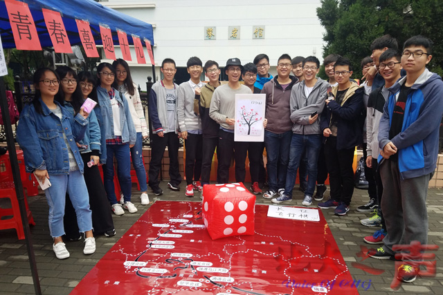 他们准备了“长征飞行棋”、知识问答、手指印花、留言等活动,很多同学积极参与。