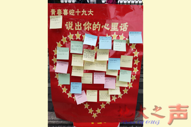 数理学院学生会外联部部长陈百慧说:“希望能借活动鼓励同学们关注十九大,同时宣扬十九大精神。”