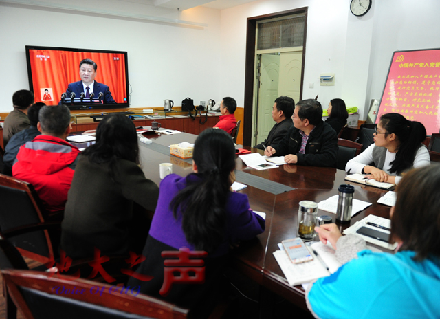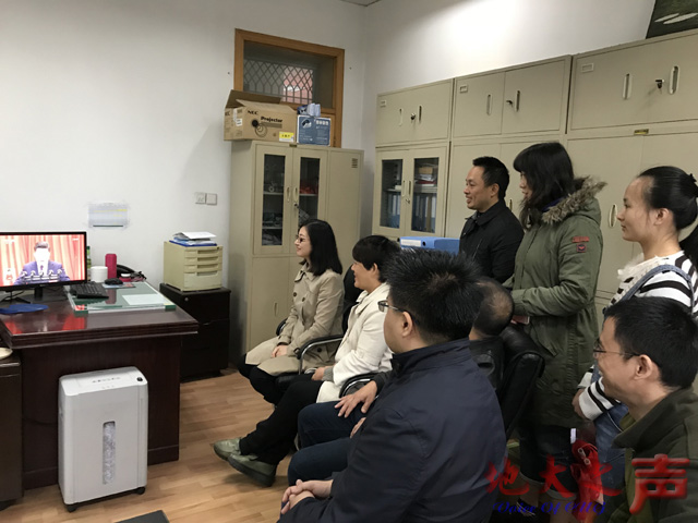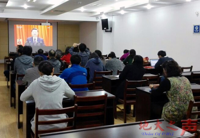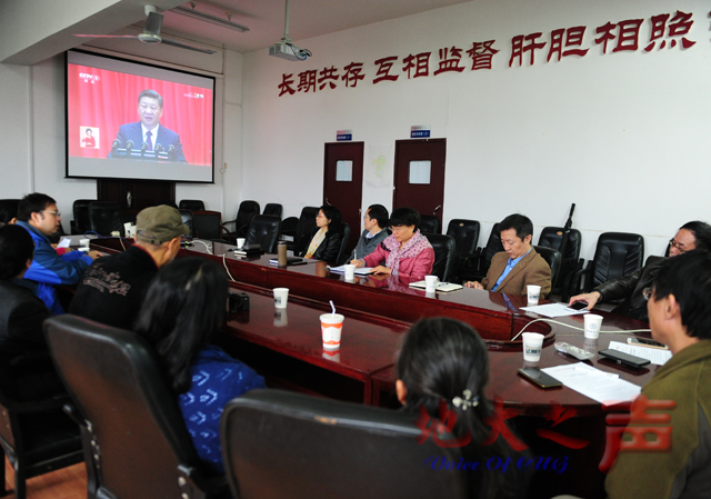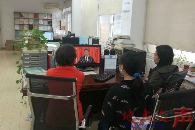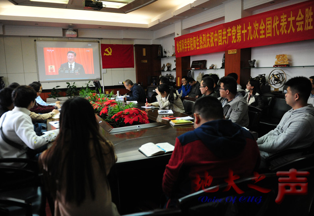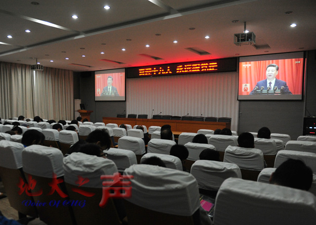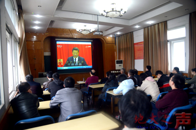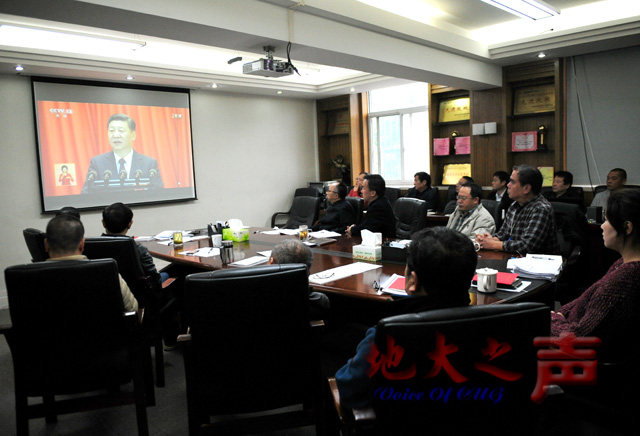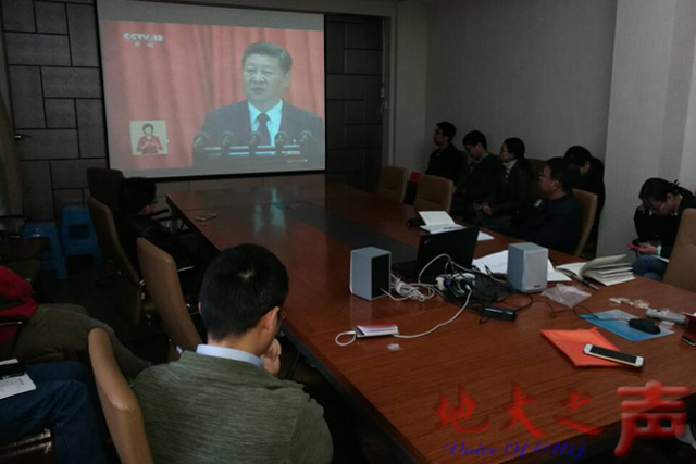 (地大之声记者徐燕 刘妍慧 庞伟红)10月18日上午9时,举世瞩目的中国共产党第十九次全国代表大会在北京人民大会堂隆重开幕。我校党委理论学习中心组成员、广大师生员工、离退休老同志怀着激动的心情,通过电视、广播、网络等不同形式收听收看了习近平总书记代表第十八届中央委员会所作的报告。