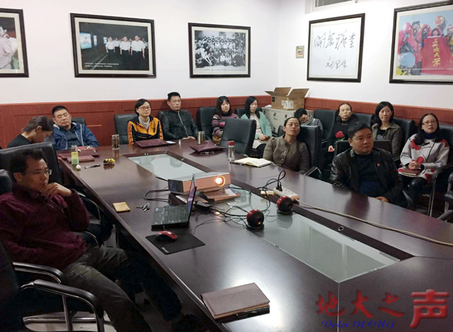 民盟地大委员会主委魏昌华老师表示,当前,学校的教学科研、文化建设和社会服务等工作面临难得的发展机遇,我们要以学习十九大报告、贯彻十九大精神为引领,以“双一流”学科建设为契机,以爱岗建业为己任,努力推进学校各项工作全面发展。