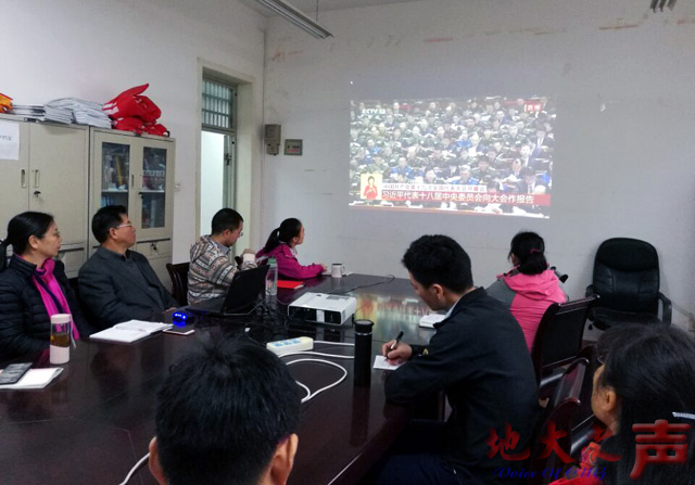 在网络中心会议室,学校党委理论学习中心组成员集体收看了十九大开幕会,认真聆听习近平总书记代表第十八届中央委员会向大会所作的报告。