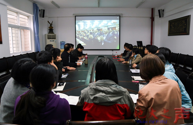 根据校党委的统一部署,学校在网络中心会议室、弘毅堂、大学生活动中心、各学院(课部)、部门会议室等设立了收听收看点,组织广大党员干部、师生集中收听收看大会盛况。