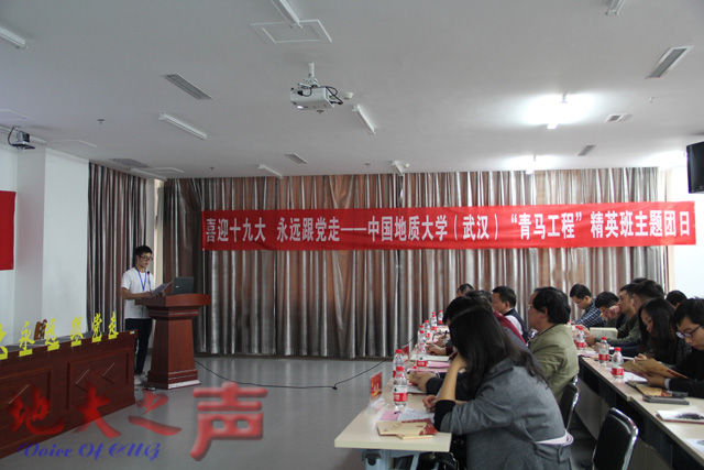 校团委副书记胡肖宣读了《关于成立中国地质大学(武汉)学习之路主题宣讲团的通知》,何光彩为宣讲团授旗。