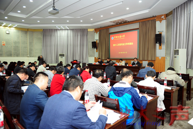 (地大之声通讯员陈汉英 摄影张玉贤)10月11日,学校召开第十二次党代会工作布置会。在校校领导何光彩、朱勤文、傅安洲、万清祥,各二级单位党员正职负责人参加会议。