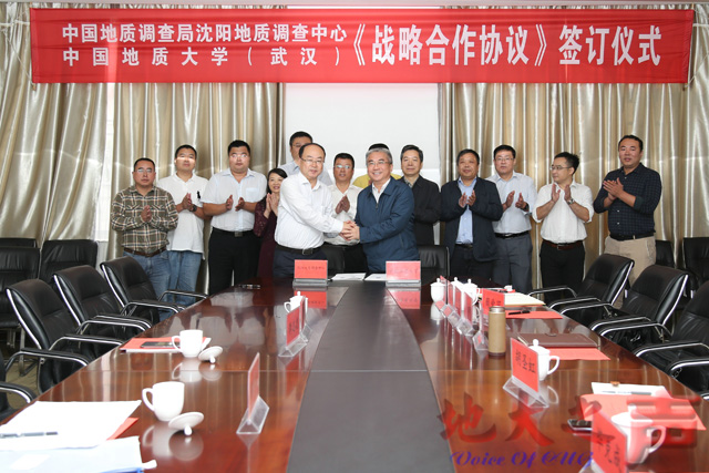 (地大之声通讯员吴春明 摄影张睿)10月8日,我校与中国地质调查局沈阳地质调查中心签署战略合作协议。中国地质调查局沈阳地质调查中心主任李志忠,校长王焰新,双方相关部门负责人参加了签约仪式。