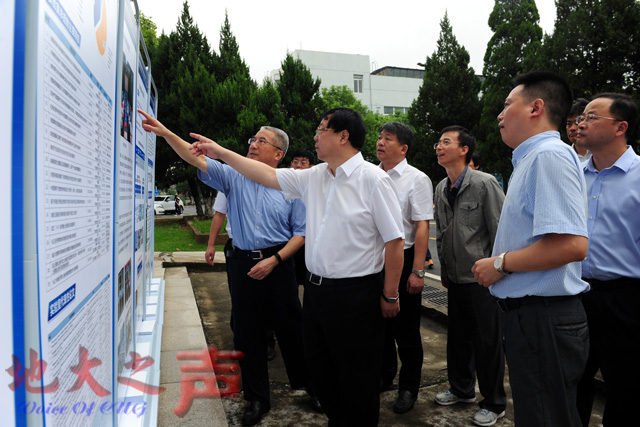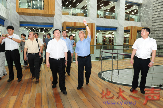 在北校区校园,王广华一行听取了何光彩、王焰新关于学校推进以“学术卓越计划”为核心的综合改革、助力国土资源事业发展情况的汇报,对学校在人才培养、学科建设、科学研究等方面取得的成绩给予充分肯定。