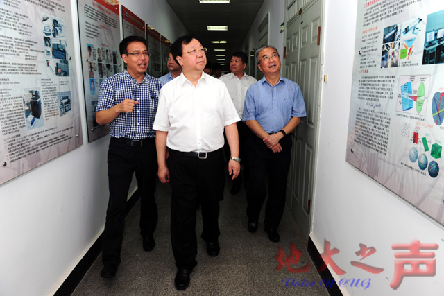 王广华一行先后考察了我校北校区校园环境、国土资源部法律评价工程重点实验室和地质过程与矿产资源国家重点实验室。