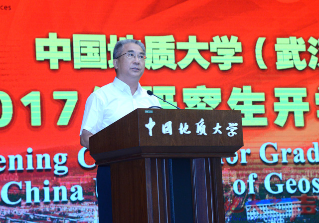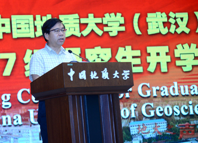 党委副书记、研究生院院长唐辉明从凝聚高质量研究生生源、完善高水平人才培养模式、实施教育国际化战略、构建全方位质量保证体系、加强研究生导师队伍建设、健全研究生资助体系等方面,介绍了我校深入推进研究生教育综合改革的情况。他希望研究生新生弘扬“工匠精神”,精益求精、守正创新,要净化品格、保持本色,好学苦学、厚积薄发,专心专注、专业专一,安分守己、注重声誉,在地大播种耕耘,收获创新成果。
