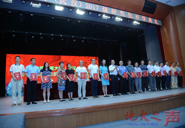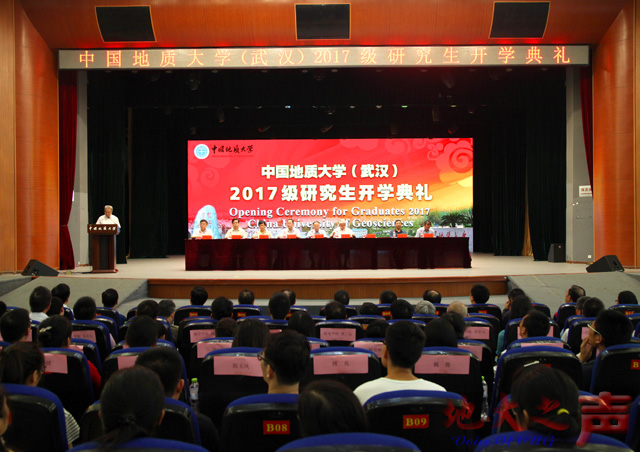 (地大之声通讯员徐伟 曹文瑞 陈彤 摄影张玉贤)9月11日下午,2017级研究生开学典礼在弘毅堂举行。中国科学院院士殷鸿福、金振民,校领导何光彩、王焰新、朱勤文、傅安洲、成金华、唐辉明、万清祥,各研究生培养单位、相关职能部门负责人及2017级研究生新同学参加了典礼。副校长傅安洲主持开学典礼。