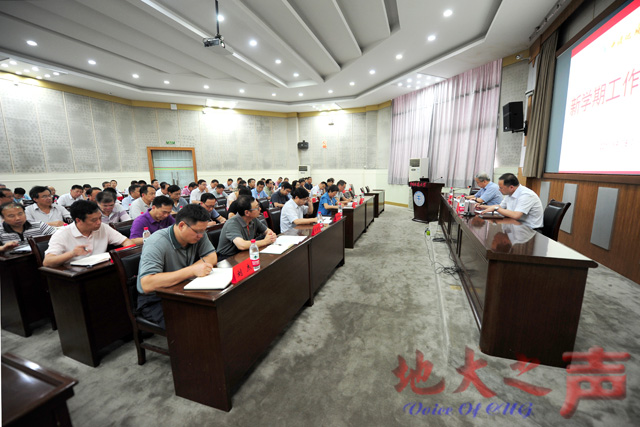 (地大之声记者徐燕 摄影张玉贤)9月8日,我校在八角楼召开新学期工作布置会。在校校领导,各二级单位党政主要负责人参加会议。