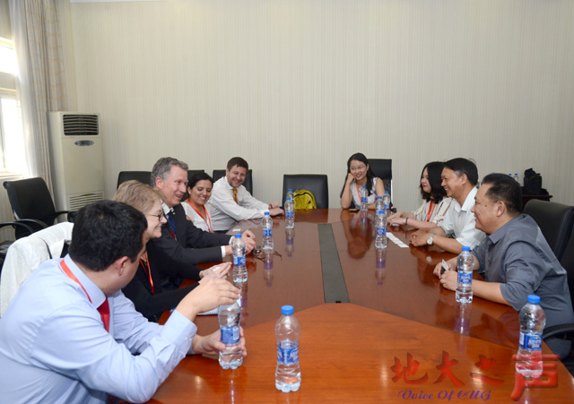 (地大之声通讯员郑适萌 罗文旭 摄影张玉贤)9月7日,智利圣康塞普西翁天主教大学校长克里斯蒂安•施米茨•瓦卡罗、圣康塞普西翁天主教大学研究与创新部创新专员维维安娜•塞普尔维达、比奥比奥大学奇廉校区研究主任罗德里戈•罗莫、圣塞巴斯蒂安大学康塞普西翁总部通讯主任奥里利欧•梅拉、智利发展大学研究主任丹尼斯•圣•耶安博士一行5人来校访问。