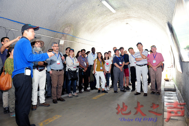 8月26日下午和27日下午,300余名参会人员沿着2条路线对4个考察点进行了野外地质考察。在黄土坡野外综合试验场,专家们走进隧洞群,详细查看了隧洞群建设及原位试验与监测情况。