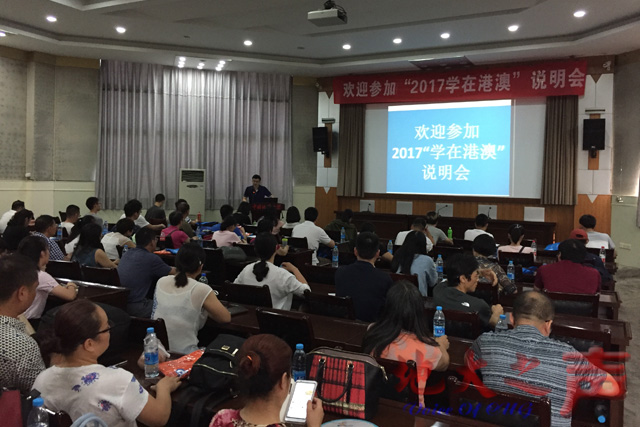 (地大之声通讯员刘倩倩)近日,由教育部主办、我校教育部出国留学培训与研究中心协办的,2017学在港澳,说明会(华中地区)在八角楼报告厅举行。来自湖北、四川、湖南、江西等省的180余名被香港高校录取的新生及其家长参加了本次说明会。