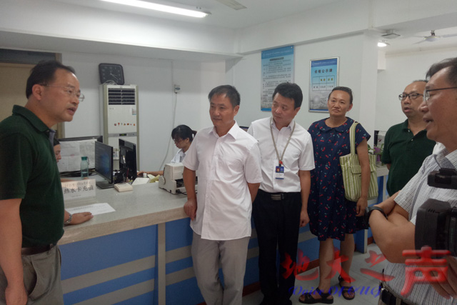 在东区一站式服务大厅,校领导仔细询问了水电保障、维修等情况,要求暑假期间科学合理调控供水供电,优先保证教职工家庭、学生宿舍的供水供电,杜绝安全隐患。