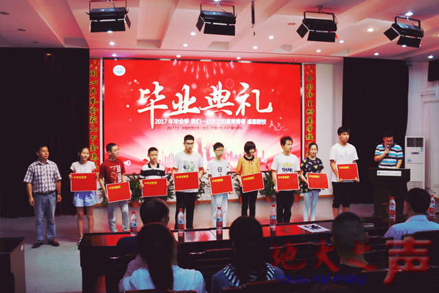 (地大之声通讯员段亚清 摄影彭丹波)7月5日,附属学校举行2017届九年级毕业典礼。附属学校党总支书记彭冠军、校长黎义波,九年级所有任课教师,80余名毕业生及其家长参加了典礼。彭冠军主持典礼。