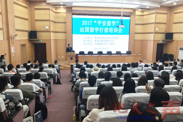 近日,教育部留学服务中心“2017年‘平安留学’出国留学行前培训会”在我校举办。来自湖北地区十多所高校的本年度国家公派出国留学资格获得者及拟自费出国留学者等300余人参加此次参训。副校长赖旭龙关于高等教育国际化的致辞,拉开了此次培训会的序幕。他指出,行前培训是一项意义深远、裨益广泛的公益性活动,能帮助出国留学人员更快适应异国的学习和生活。他希望通过此次培训会,社会各界能够了解、重视、践行“平安留学、文明留学、健康留学、成功留学”的理念。