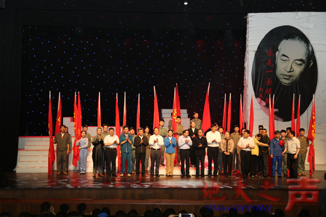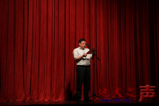 校党委书记何光彩介绍了《大地之光》创作情况。他指出,话剧《大地之光》的创作,经历了一个不平凡的过程,该剧自2012首演以来,已经在北京、武汉、西安等地正式演出25场,受到各界好评。他强调:“《大地之光》的持续演出过程,是科技界、教育界和全社会大力弘扬李四光精神的过程,是培育和弘扬社会主义核心价值观、为实现中华民族伟大复兴的中国梦造就更多优秀人才的教育培养过程。”