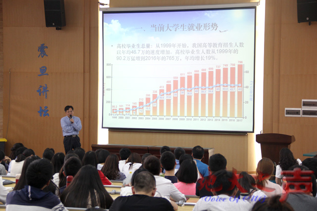 (地大之声通讯员陈昭颖 刘强民)近日,湖北省人力资源和社会保障厅副厅长董长麒做客我校震旦讲坛,就“当前大学生就业形势和就业创业政策”与师生分享交流。