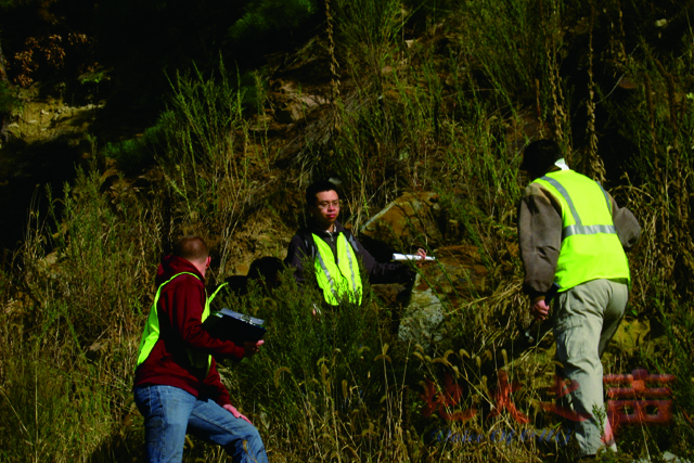 2012级博士生王舟(中)在美国弗吉尼亚州西南部阿巴拉契亚山脉New River Valley地区野外考察