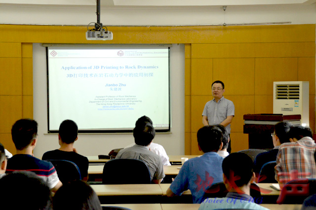 (地大之声通讯员胡燕)5月19日下午,香港理工大学土木工程系助理教授、博士生导师、岩石力学实验室主任朱建波来校作报告。近100名师生聆听了报告。